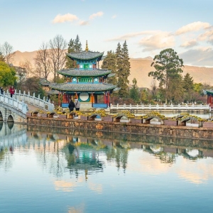 Buổi sáng: Đoàn ăn sáng tại khách sạn sau đó trả phòng khách sạn, xe đón đoàn chuyển đến CÔNG VIÊN HẮC LONG ĐÀM thăm quan – công viên được xây dựng từ năm 1737 dưới triều đại nhà Thanh và được đặt tên theo một hồ nước nhân tạo có hình dạng giống một con rồng đen. Từ công viên Hắc Long Đàm có thể ngắm sự hùng vĩ của núi tuyết ngàn năm, trong khung cảnh thanh bình của nước hồ phẳng lặng