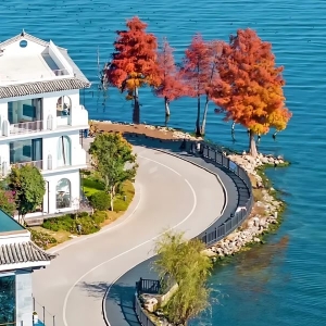 Thăm quan Santorini – phiên bản “ Địa Trung Hải thu nhỏ”, view hướng ra hồ Nhĩ Hải ( tự túc đồ uống nếu muốn checkin view toàn cảnh trên cao nhà hàng)