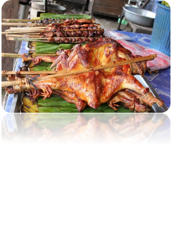 và xôi, đặc sản Lào tại ngã ba SENO hay còn gọi là « ngã ba bâng khuâng » (chi phí tự túc).