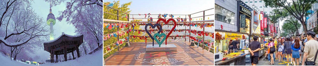 - Tháp truyền hình Namsan Seoul (không bao gồm chi phí thang máy lên đài quan sát) – là tháp truyền hình nằm trên ngọn núi Namsan, vừa là điểm tham quan, vừa là tháp phát sóng truyền hình. Nơi đây không biết đã có bao nhiêu cặp đôi cùng viết những lời hẹn ước...